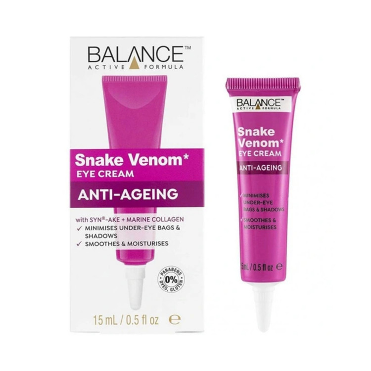 کرم دور چشم سم مار بالانس ضد پیری BALANCE snake venom eye cream حاوی یک ماده فعال منحصر به فرد ، Syn-Ake است.