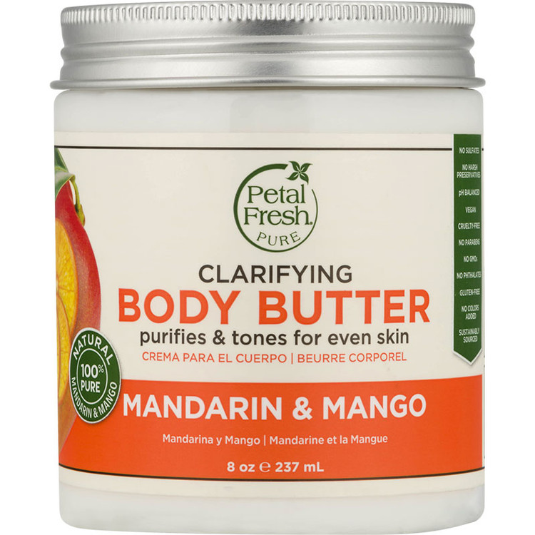 کره بدن انبه ماندارین پتال فرش سرشار از ماده مغذی مانند عصاره انبه و پرتقال ماندارین و روغن و عصاره کوکونات است که این ترکیبات فوقالعاده قوی تغذیه کننده و محافظ پوست هستند.