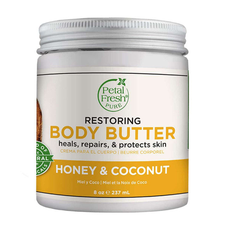 کره بدن عسل و نارگیل پتال فرش Petal Fresh Restoring محصولی باکیفیت و ارگانیک جهت آبرسانی و بازسازی پوست می باشد. کره بازسازی کننده بدن پتال فرش از عصاره های طبیعی از جمله عسل ارگانیک و روغن نارگیل ارگانیک دارای گواهی تایید شده و تولید شده در آمریکا تهیه شده است. عسل دارای خاصیت تغذیه کنندگی پوست بوده و همچنین خواص تسکین دهندگی و ضدمیکروب و التیام بخش داشته و روغن نارگیل نیز برای آبرسانی و نرمی پوست گزینه ای بسیار خوب است. علاوه بر این روغن آرگان و شی باتر نیز به این ترکیب اضافه شده که نرمی و لطافت پوست را به حداکثر می رساند. کره بدن عسل و نارگیل پتال فرش ضمن ترمیم و احیای سلامتی پوست بدن، از پوست در برابر آسیب های ناشی از آفتاب محافظت می کند و همراه با رایحه دلپذیر محصولی دوست داشتنی در برنامه مراقبت روزانه مان به حساب می آید.