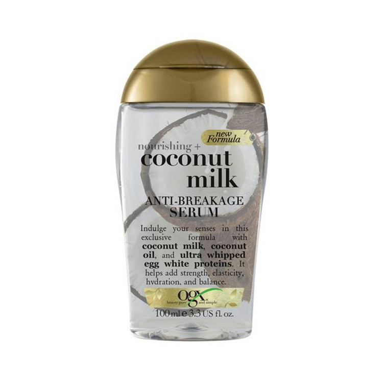 سرم مو شیر نارگیل از برند آمریکایی او جی ایکس بافت فوقالعاده سبکی دارد و سبب چرب و سنگین شدن مو نمیشود.