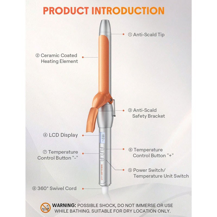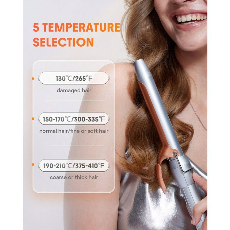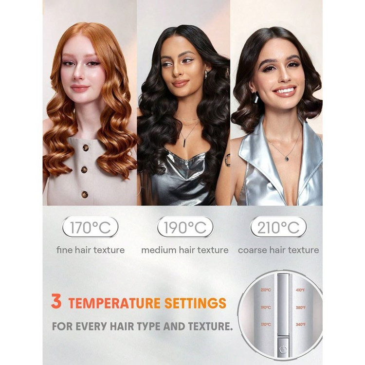 [نمایشگر LED، ۸ گزینه دمایی] دمای نمایشگر LED این فرکننده اتوماتیک بین ۱۳۰ تا ۲۱۰ درجه سانتیگراد بوده و دارای ۸ تنظیم دمایی است که مناسب انواع مو (زبر، متوسط، نازک و نرم) است. لطفاً تنظیم مناسب برای موی خود را انتخاب کنید.
