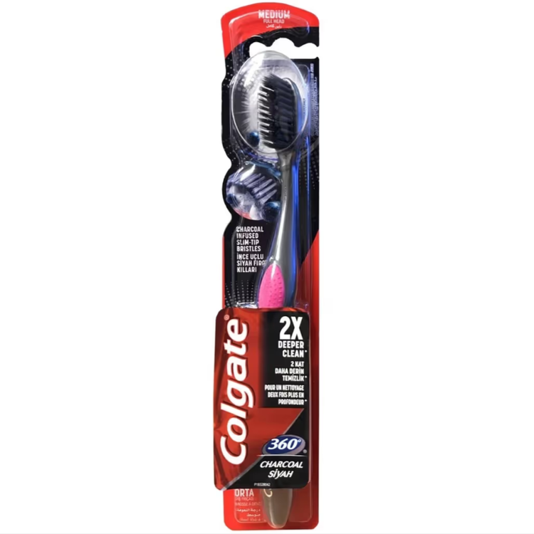 ویژگی: مسواک مدیوم ذغالی کلگیت 360 درجه Colgate 360 Charcoal محصولی باکیفیت با قدرت پاک کنندگی دو برابر در مقایسه با مسواک های رایج می باشد. مسواک 360 درجه کلگیت دارای برس حاوی زغال شارکل جهت پاک کنندگی بیشتر و از بین بردن باکتری های دهان می باشد.