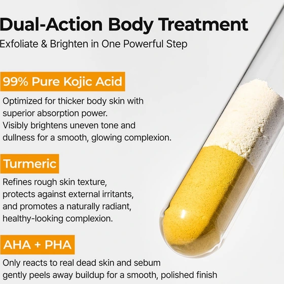 ویژگی: از بین برنده پوست مرغی بدن ، رفع ناهمواری ها و زبری پوست بدن ، ایجاد پوستی نرم و یکدست روشن کننده قوی پوست بدن ، رفع تیرگی های نواحی حساس بدن ، لایه بردار سلول های مرده